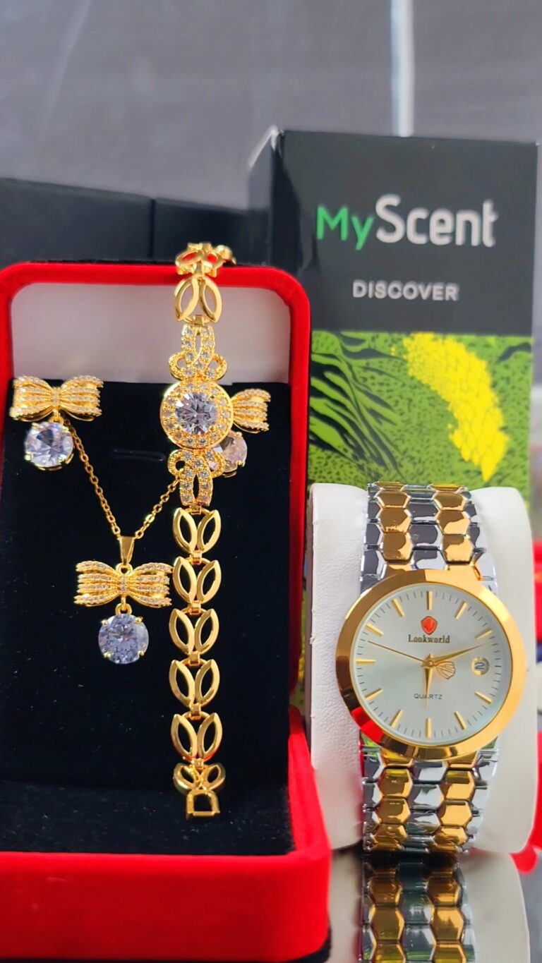 Watch + Necklace set + Bracelet + Free Perfume + Free Delivery